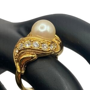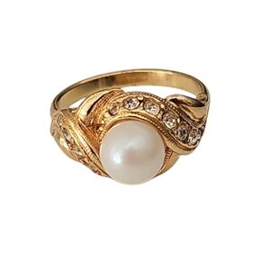 Avon Pearly Contemporary Ring Gold Tone Pearl Rhinestones