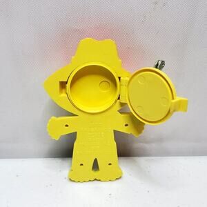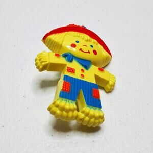 Vintage: Adorable, "Peter Patches" yellow scarecrow plastic Pin Pal brooch dressed in orange & blue accents/empty circular fragrance glace on the back/silver-tone safety locking clasp by Avon. In excellent condition & the hidden compartment is perfect for a small secret treasure/photo. **Disclosure: does not have the fragrance glace or the original packaging / minor scuff marks. Please see pictures.