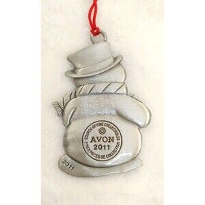 Avon Pewter Christmas Ornament 2011 Snowman Red Crystals no Box