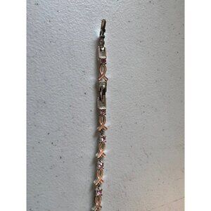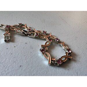 Avon Pink Breast Cancer Ribbon and Stones Bracelet with Fold Over Clasp