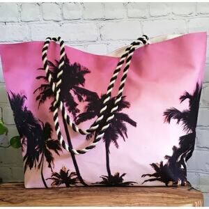 Beach, Summer, Tropical, Vacation, Travel, Cruise, Resort Wear, Boho, Bohemian, Casual, Everyday, Palm Tree, Ombre, Pink, Black, White, Tote Bag, Shoulder Bag, Handbag, Accessory, Statement, Getaway, Pool, Lakeside
