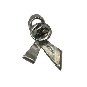 This Avon breast cancer awareness pin features a polished metal ribbon adorned with pink rhinestones. The pinback design ensures secure attachment, adding purpose and charm to any outfit.