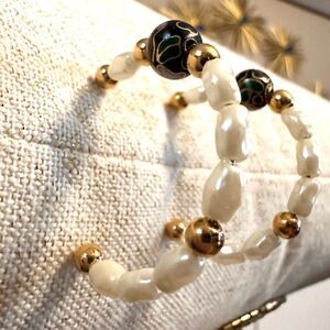 Avon Post Back Open Hoops Strung wih Faux Pearl and Cloisonne
