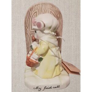 Avon Precious Moments "My First Call" Ceramic Figurine Mouse With Bask