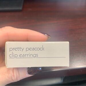 Avon “Pretty Peacocks” Goldtone clip Earrings with blue stone Accents NIB 1991