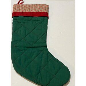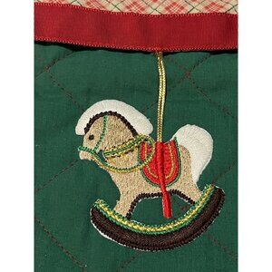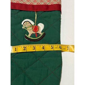 Avon Quilted Green Christmas Stocking With Rocking Horse Embroidery & Plaid Cuff