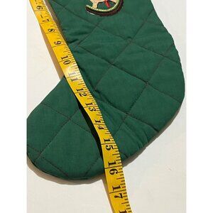 Avon Gallery Originals rocking horse Christmas stocking. Green Quilt fabric with red stitching