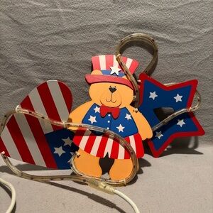 Avon Red White & Blue Lighted Accent Patriotic American Decoration Teddy Bear