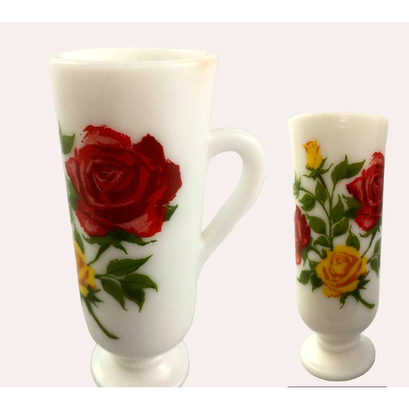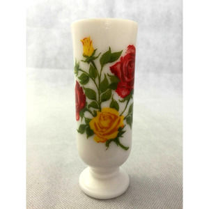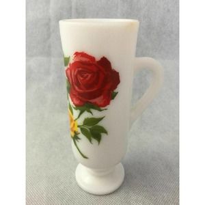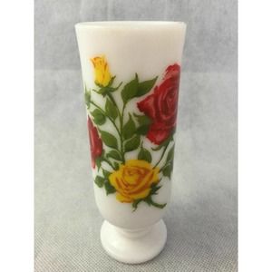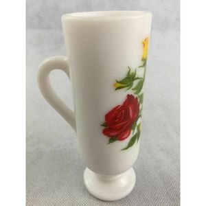 Avon Red Yellow Roses Flowers White Milk Glass Mug Handled Pedestal Bud Vase 1pc