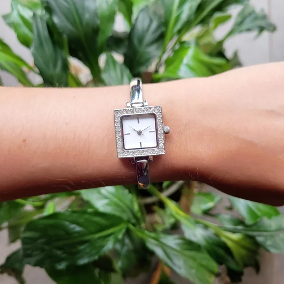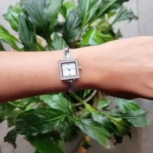 estate jewelry classy elegant gift gifts present presents stocking stuffers face case dial bezel face dial band model women womens women's woman womans man's men mens unisex watches square shape shaped analog white silver tone indices classic simple 357