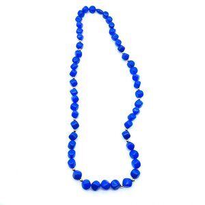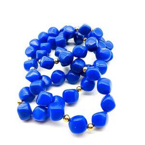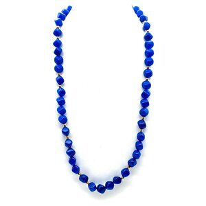 Avon Royal Blue and Gold Beaded Vintage Necklace with Hidden Clasp and Lucite