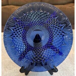 Avon Royal Sapphire/Arcoroc France Cobalt Blue Divided Glass Relish Dish Leaf