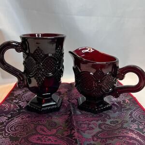 Avon Ruby Red Collection Vintage Coffee Pedestal Mug and Creamer.