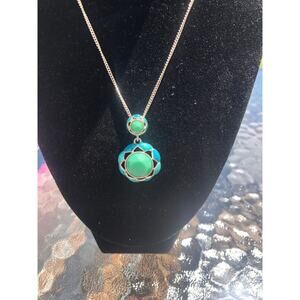 Avon SAQ Vintage 1980s Silver Tone Necklace with Turqoise Blue and Green Pendant