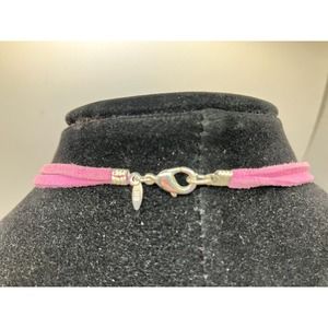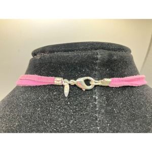 Avon SH Purple Pink Faux Pearls Beaded 2006 2 Strand Silver-Tone Chain Suede Cord Necklace! The lavender cord shows signs of wear.
