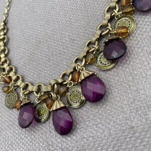 Avon SP Faceted Crystal Teardrop Charm Chunky Necklace Gold Tone 16 to 19 Inch