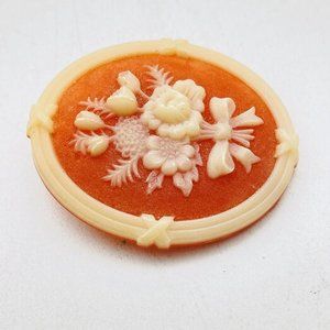 Avon Signed Cameo Style Pin Flower Bouquet Acrylic Nature Garden Trees Floral