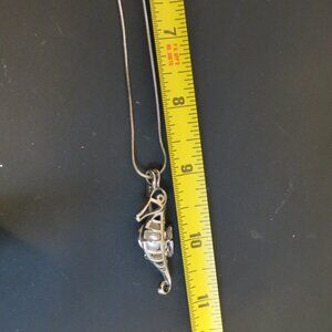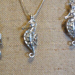 Elegant silver seahorse necklace with matching earrings. Perfect for ocean lovers.