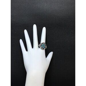 Avon Silver Tone Adjustable Ring W/ Faux Turquoise Sierra Design Signed SC (R62)