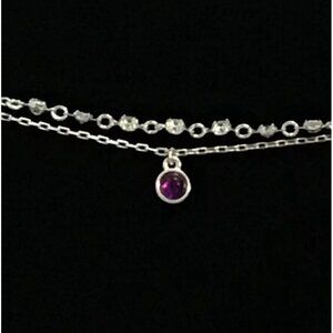 A delicate vintage Avon bracelet that whispers stories of elegance and subtle sophistication. Crafted with intricate layered sterling silver chains, this piece features a mesmerizing amethyst-hued charm that catches light with understated grace.