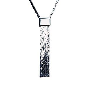 This elegant silver-tone necklace features a triangle link chain with a sleek tassel pendant. A versatile accessory for formal or casual looks.