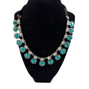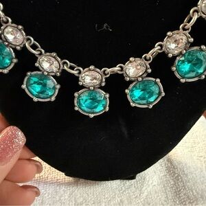 Stunning necklace with green and clear stones. Silver chain adds elegance. Perfect for any occasion.