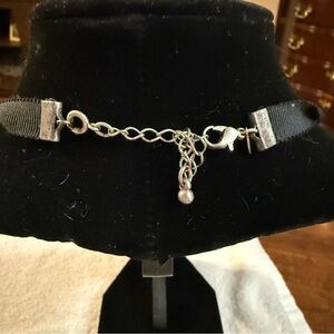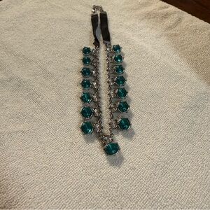 Avon Silver and green gemstone ribbon/metal Necklace vintage