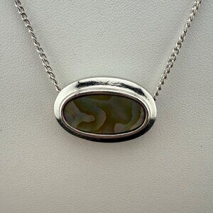 Avon Silver-Toned Genuine Abalone Oval Pendant Necklace With Chain & Spring Ring