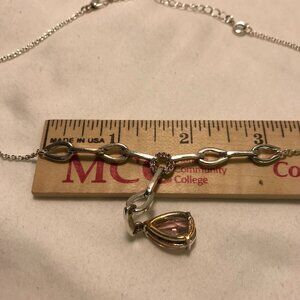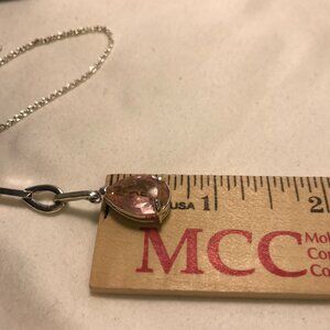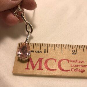 Avon Silvertone Y Necklace With Light Rose CZ Teardrop