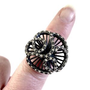 Avon Size 10 Diamonesque Scroll Filigree Style Cocktail Ring Silver Tone