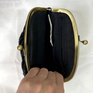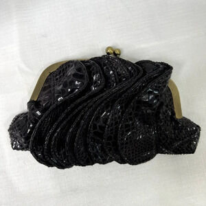 Avon Small Black Ruffle Clutch with Kiss Lock