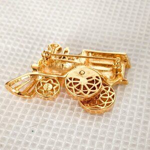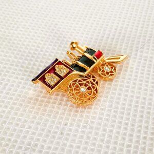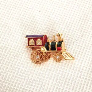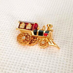 Avon Smithsonian Holiday Locomotive Brooch Red Black Enamel Rhinestone Train Pin