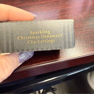 Charming holiday ornament clip earrings with gold and red accents. Perfect for festive occasions.