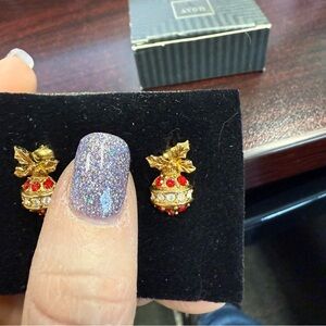 Avon “Sparkling Christmas Ornament”Gold and Red Holiday clip earrings NIB 1992