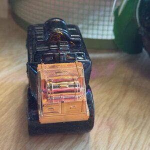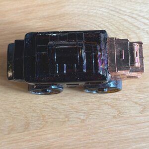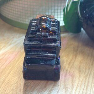 • Dark Brown/Amber tone bottle in the shape of a stagecoach, trunk shaped copper tone cap. Once upon a time housed Öland After Shave
