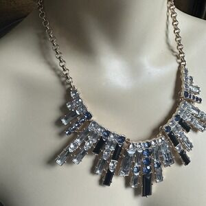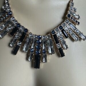 Avon Statement Bib Necklace 18" Blue Black Clear Crystal Rhinestone Gold Plated