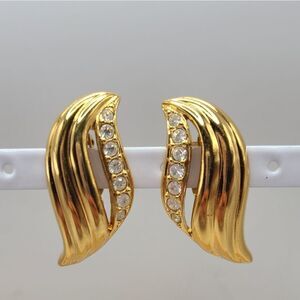 Avon Swirl rhinestone earrings, clip on
