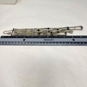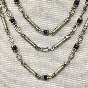 Avon Triple Strand Silver Tone Necklace with Black Bead Accents Vintage 90's