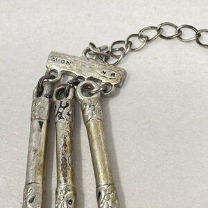 This vintage 90's Avon necklace features a triple strand design with silver tone chains and black bead accents. A timeless piece that adds elegance to any outfit, perfect for collectors and fashion enthusiasts alike.