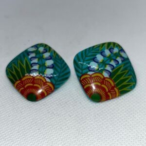 Avon Tropical Beauty Earrings Square Turquoise Plastic Clip On Earrings 1987