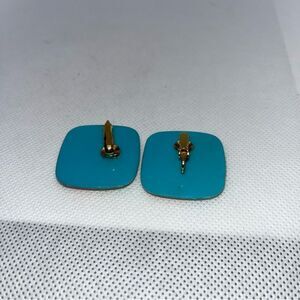 Avon Tropical Beauty Earrings Square Turquoise Plastic Clip On Earrings 1987 VTG