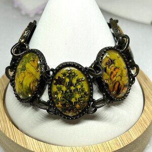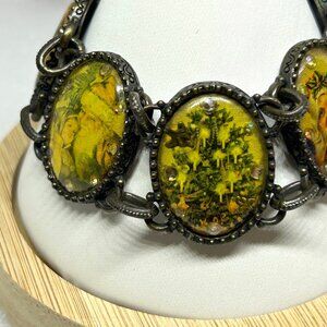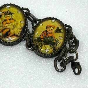Avon Victorian Christmas Scenes Bracelet Antique Brass Tone Signed