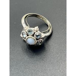 Avon Vintage 1974 Blue Glass Crystal Moonglow Magic Cluster Flower Ring ADJ 5.5