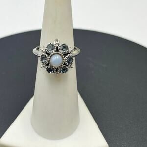 Introducing our exquisite Vintage Avon Blue Crystal Moonglow Cluster Flower Ring—a stunning piece of vintage jewelry that captures the essence of timeless beauty. This ring is a true gem from Avon's vintage collection, exuding elegance, sophistication, and a touch of nostalgia.