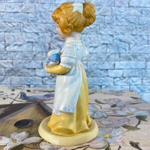 Hand painted and made exclusively for Avon this little girl is holding a baby doll and has a bow in her hair.