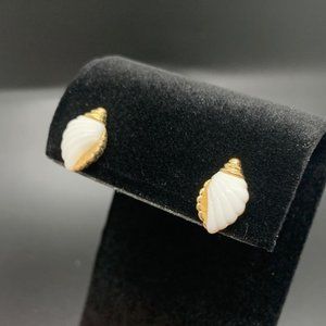 Avon Vintage 1985 Sea Swirls Gold Tone White Acrylic Shell Pierced Stud Earrings