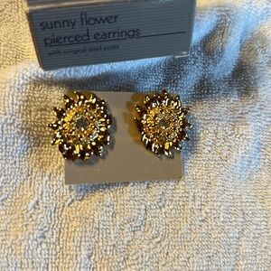Avon Vintage (1991) Sunny Flower Gold Tone and Crystal Pierced Earrings