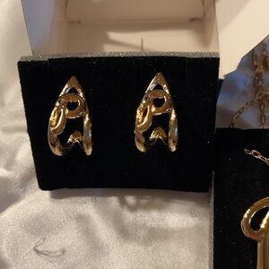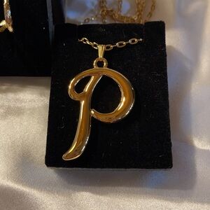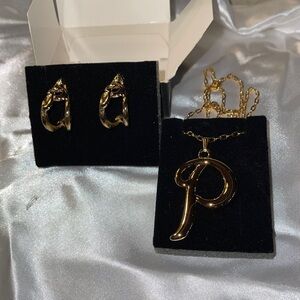 Avon Vintage (1992) Golden Initial “P” Earrings and Pendant Set 28” long chain