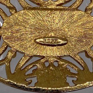 Avon Vintage Brooch Gold Toned With Porcelain Inset with Roses 2 inch Oval