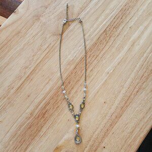 Avon Vintage Burnished Silver Tone Yellow Stone Tear Drop Necklace. Dainty and feminine. Perfect for proms or weddings. Costume jewelry. Excellent condition.